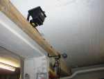 Auf dem linken der beiden Bilder sieht man unseren selbstgebastelten 'Beleuchtungsbalken', der für die notwendige Helligkeit hinter der Theke gesorgt hat Der Halogenstrahler in der mitte strahlt direkt auf die weiße Decke, was für eine relativ gleichmässige, weiche Beleuchtung sorgt. Rechts sieht man einen Teil des Sets.