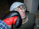 Um 16.00 Uhr waren dann alle am Dreh beteiligten Personen anwesend und wir konnten loslegen. Ursprünglich hatten wir geplant, mit einem selbstgebastelten Kamera-Dolly ein wenig Dynamik in die Szene zu bringen, aber leider hat sich die Konstruktion in Verbindung mit dem leicht unebenen Kellerboden als unpraktikabel erwiesen. Statt dessen hat der Kameramann den Camcorder mitsamt Stativ frei geführt. Durch das zusätzliche Gewicht des Statives ergab sich eine Art almost-but-not-really-steady-cam. Die Wackelei hielt sich damit in Grenzen und uns sind an diesem Tag einige schöne Takes gelungen.